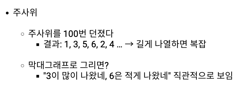 - 히스토그램에서 막대들은 일반적으로 서로 붙어있고, 중간에 틈이 있ㄷ는 것은 그 부분에 해당하는 값들이 존재하지 않는다는 것을 의미